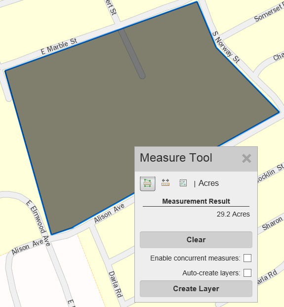 Tip - Click the Enable concurrent measures checkbox to measure multiple areas. As you draw new regions, the measure tool will display the running total.