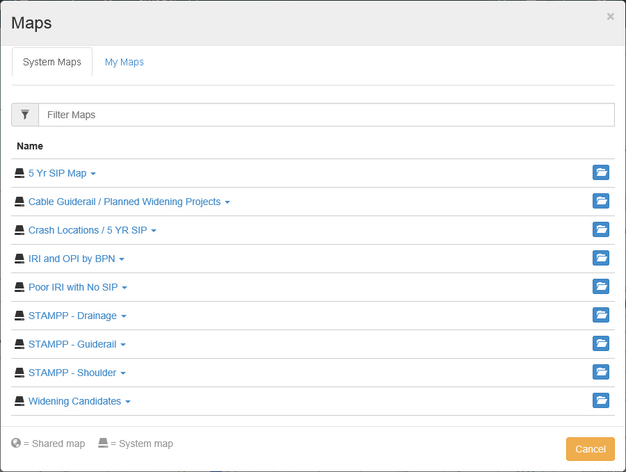 2. If desired, click the "My Maps" tab to display a list of standard maps.