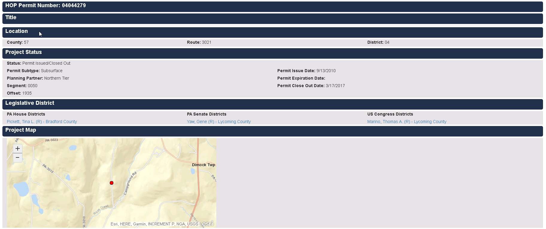 This report provides general information for the selected HOP project. As applicable, the HOP Project Detail Report will contain a map at the bottom of the report, the map can be manipulated within the report.