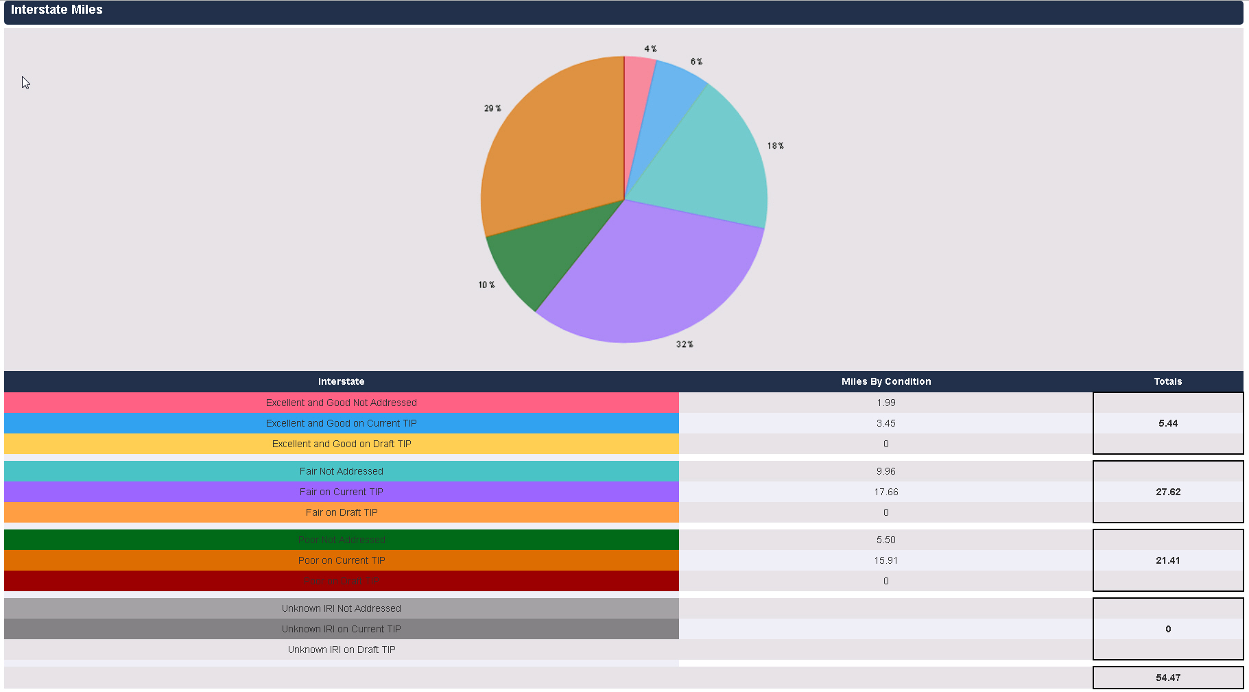 This report displays bridge and IRI information for the selected MPO/RPO.