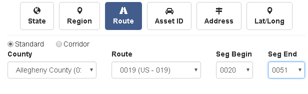 County - Choose the county the route is located in. County is required unless choosing corridor.