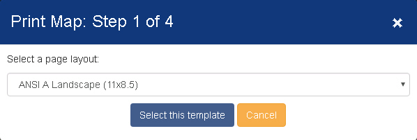 Step1:Select the print size in Step1 and click 'Select this template'. Hit cancel to close the print modal.