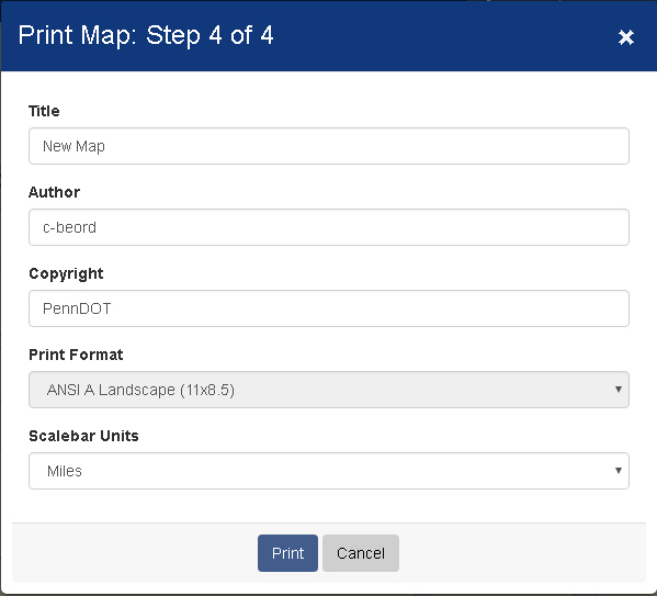 from the Maps menu. Print modal