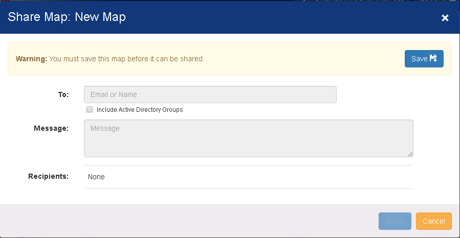 Share - Click this button to send the link to the map to the recipients listed.