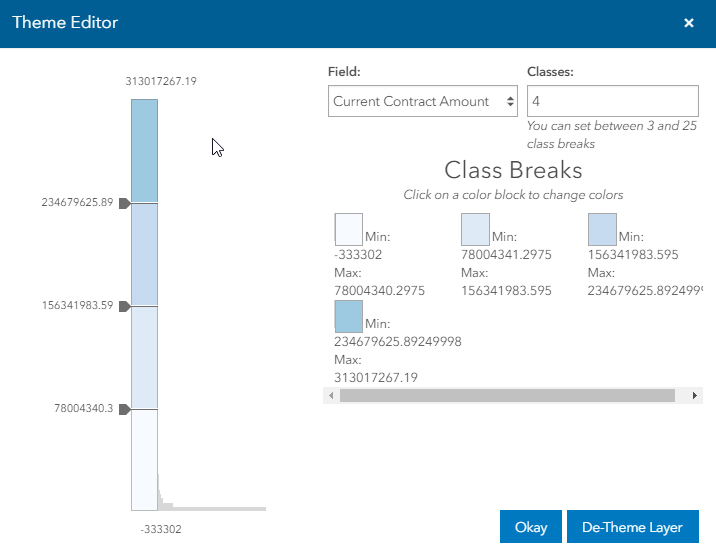 2. Select an attribute from the Field drop down list and set the Classes as desired.