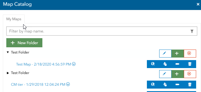 New Folder - Click this button to add a folder that you can use to organize your maps. The Add Folder related fields appear on the same window.