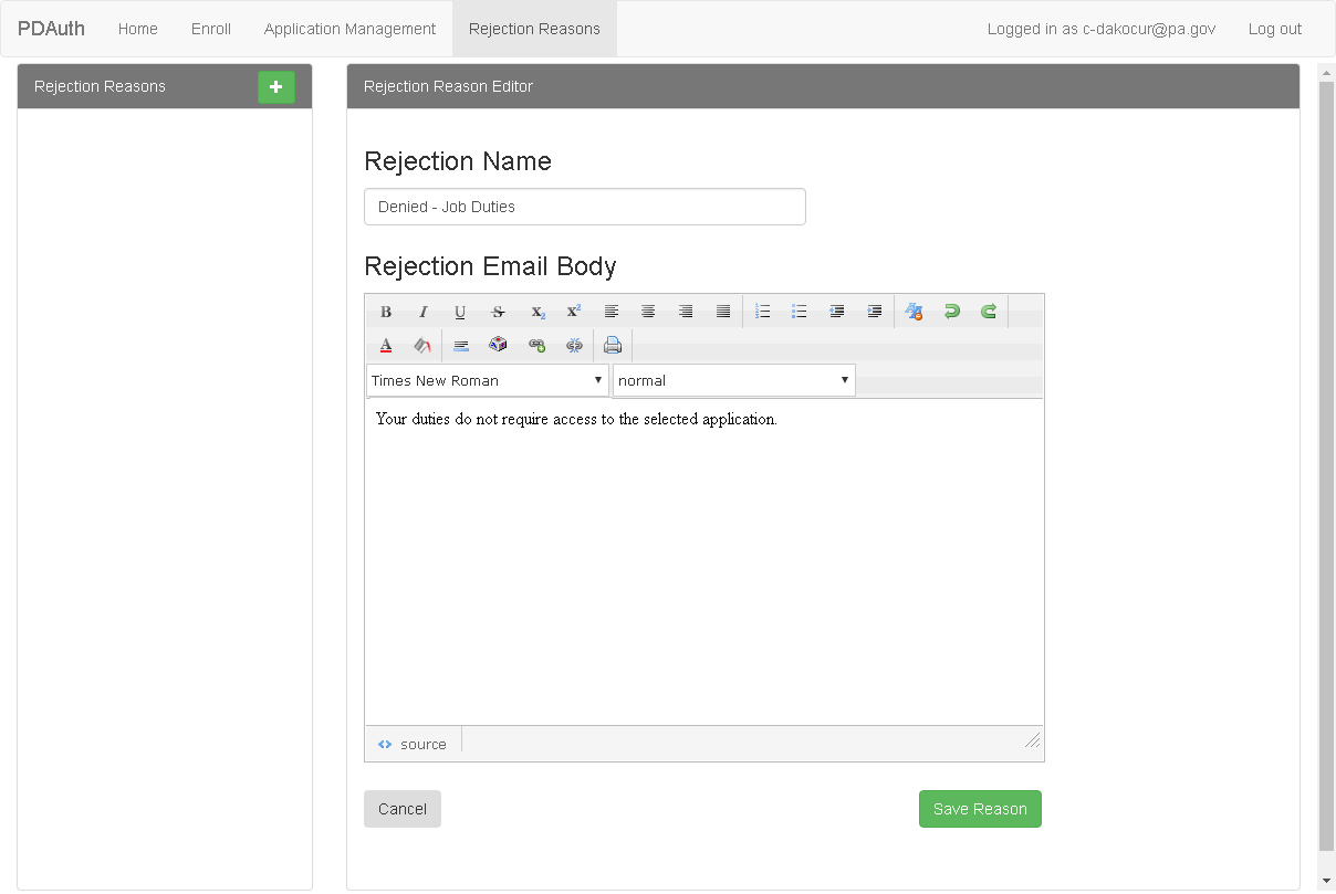 Use the following procedure to modify an existing rejection reason for user access requests: